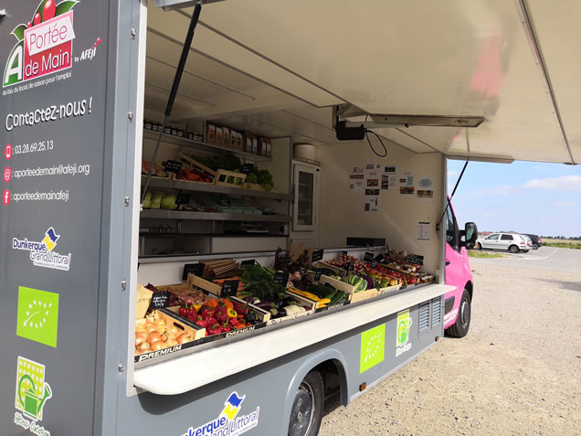 Le bio-camion se déplace sur la communauté urbaine de Dunkerque et la communauté de communes des Hauts-De-Flandre afin de donner accès au plus grand nombre à des produits bio, locaux et de saison. Vous retrouverez les produits issus de notre production maraîchère et de nos producteurs partenaires locaux.